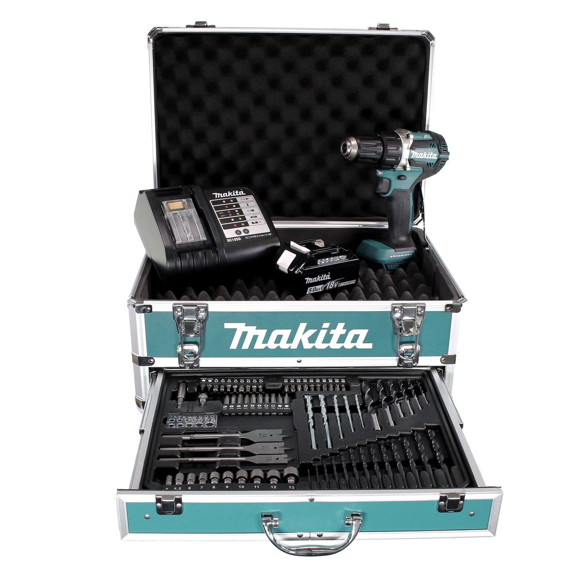 Makita DDF 484 STX4 Akku Schlagschrauber 18V 54Nm Brushless + 1x Akku 5,0Ah + Ladegerät + 70tlg. Bit Bohrer Set + Koffer