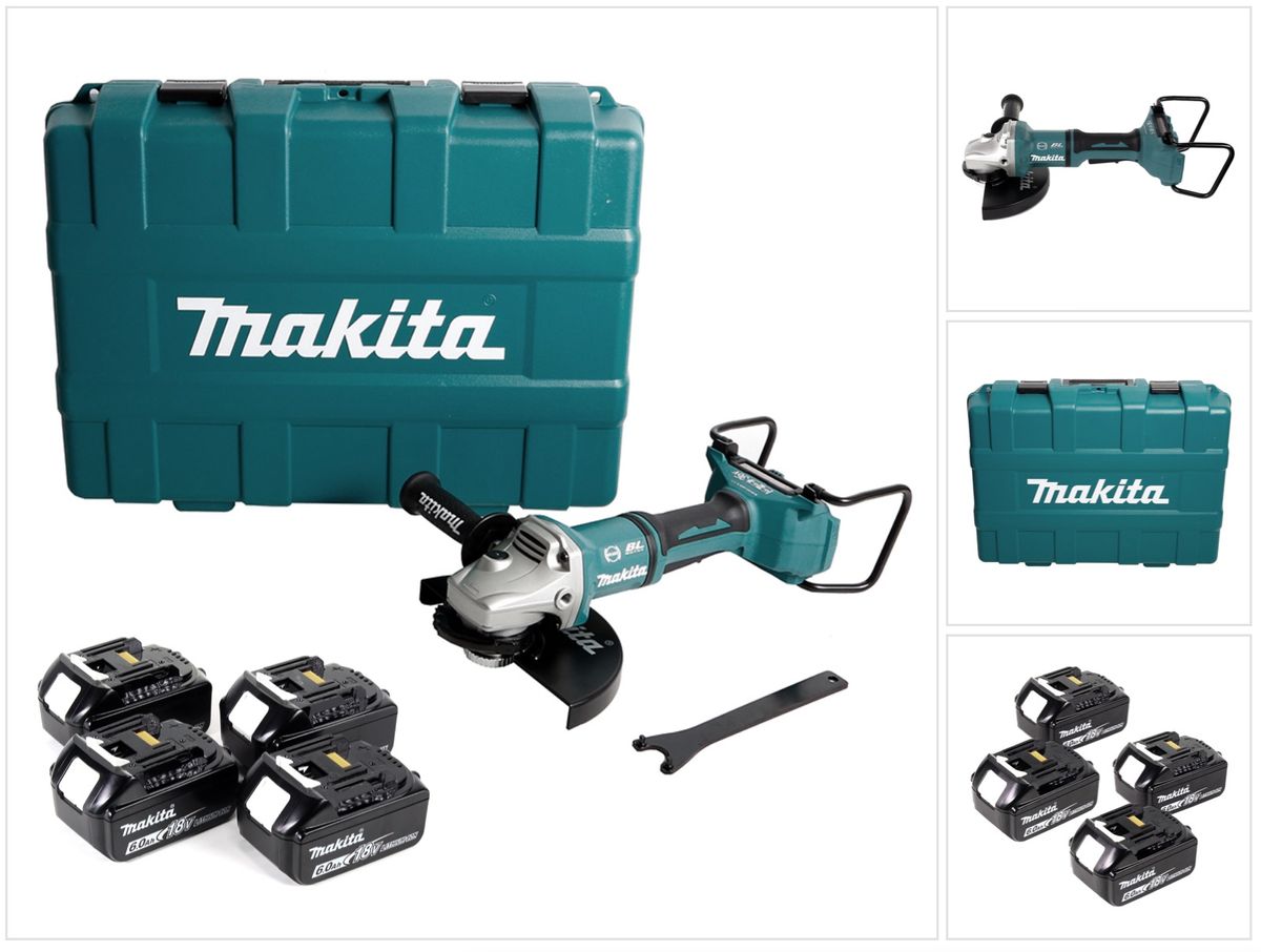 Makita DGA 900 G4KX2 Akku Winkelschleifer 36V ( 2x18V ) 230mm Brushless + 4x Akku 6,0Ah + Ezynut + Koffer - ohne Ladegerät