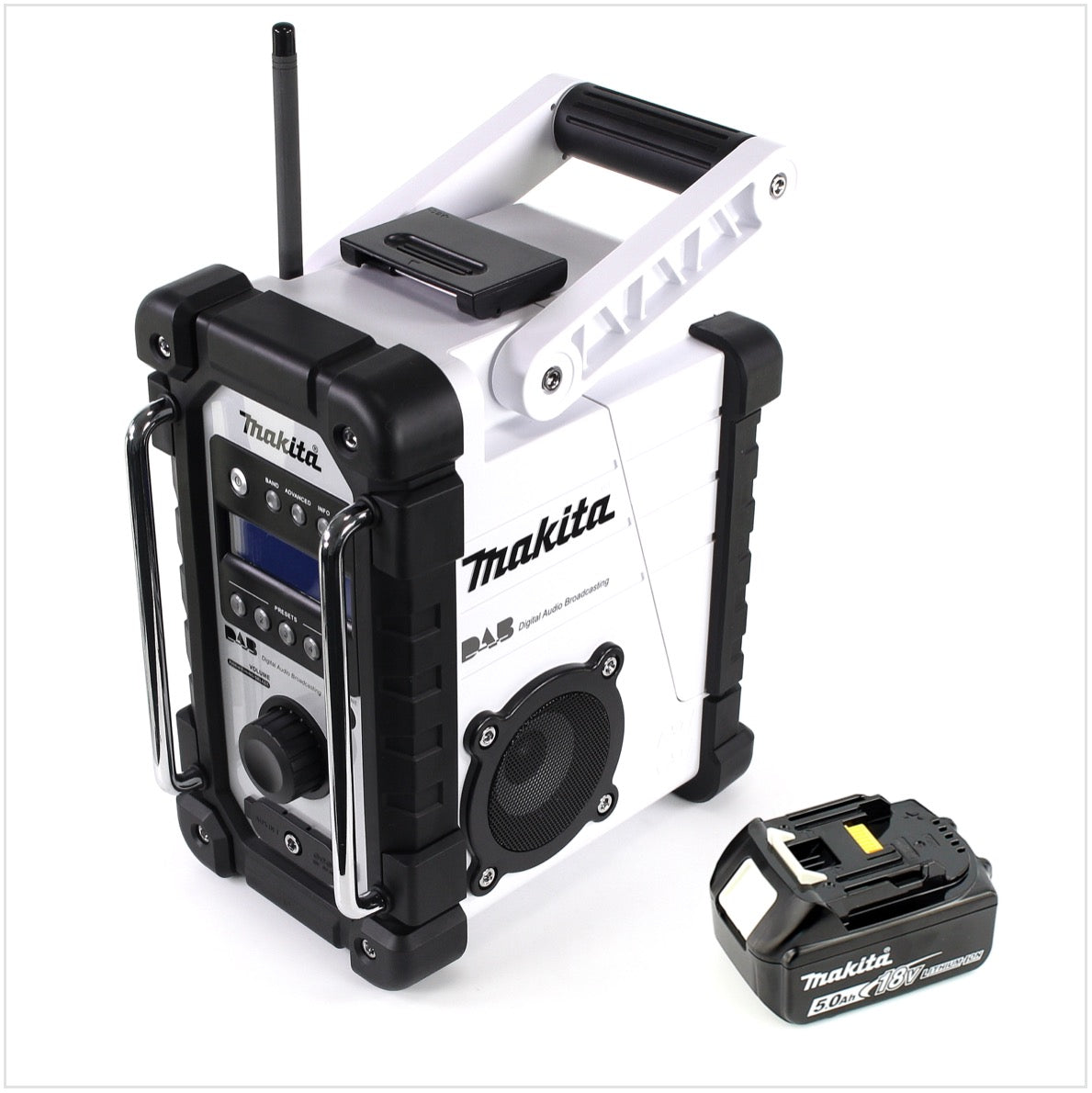 Makita DMR 109 W Akku Baustellen Radio weiß 7,2 - 18 V + 1x BL 1850 B 18V - 5,0 Ah Akku - ohne Ladegerät