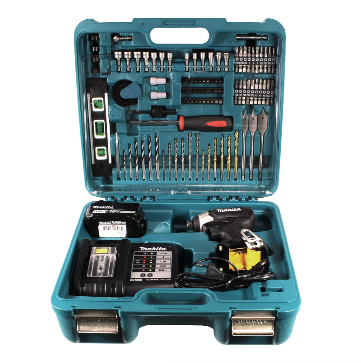 Makita DTD 155 SMTK B Akku Schlagschrauber 18V 140Nm Brushless + 1x Akku 4,0Ah + Ladegerät + 101tlg. Zubehörset im Koffer