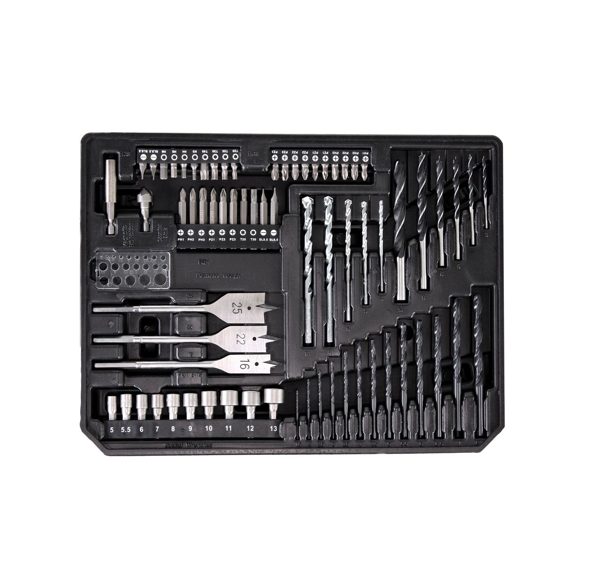 - 20x Bit 25 mm ( PH1 / PH2 / PZ1 / PZ2 / PZ3 / PZ3 / T20 / T2 / T30 / T40 / H3 / H4 / H5 / H6 / SL5,5 / SL6,5 )