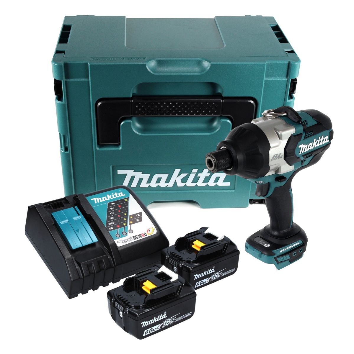 Makita DTW 800 RGJ Akku Schlagschrauber 18 V 7/16" 800 Nm Brushless + 2x Akku 6,0 Ah + Ladegerät + Makpac