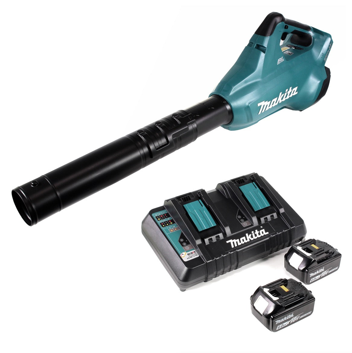 Makita DUB 362 2x18 Volt Akku Laubbläser Akku-Gebläse + 2x 6 Ah Akku + Makita DC 18 RD Doppel Ladegerät