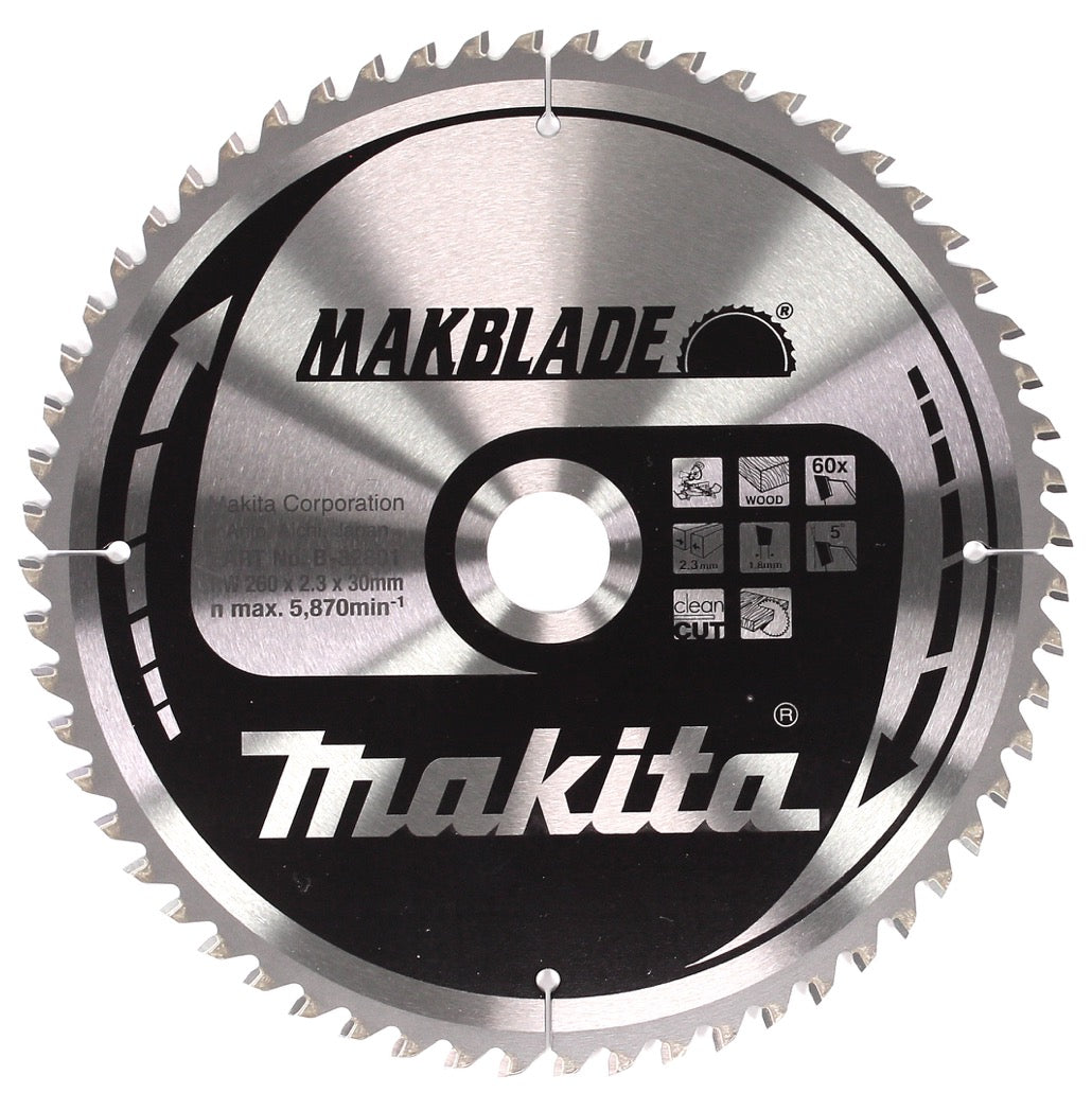- 1x Makita MAKBLADE Kreissägeblatt für Holz 260 x 2,3 x 30 mm 60 Zähne ( B-32801 )