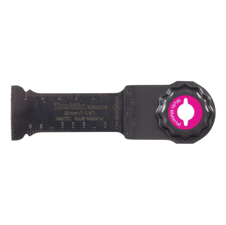 Der MAM006 Tauchsägeblatt ist zum Schneiden von harten Materialien wie beispielsweise Kohlefaser oder Blech geeignet. Dank des dünnen Sägeblattes sind kontrollierte und saubere Tauchschnitte gewährleistet. Die Starlock Max Aufnahme sorgt für eine maximale Kraftübertragung und bequemen Klingenwechsel innerhalb weniger Sekunden und ist dank des herstellerübergreifenden Aufnahmesystems mit vielen Maschinen einsetzbar. Makita ist einer der weltweit führenden Hersteller für verschiedene Werkzeuge, der sich vor allem durch seine hohe Verarbeitungsqualität und sein riesiges 18 Volt Akkusystem, mit über 360 kompatiblen Maschinen, auszeichnet.