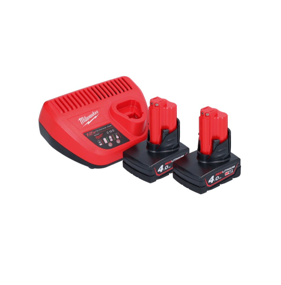 - 2x Milwaukee M12 B4 12 V 4,0 Ah / 4000 mAh Li-Ion Einschub Akku