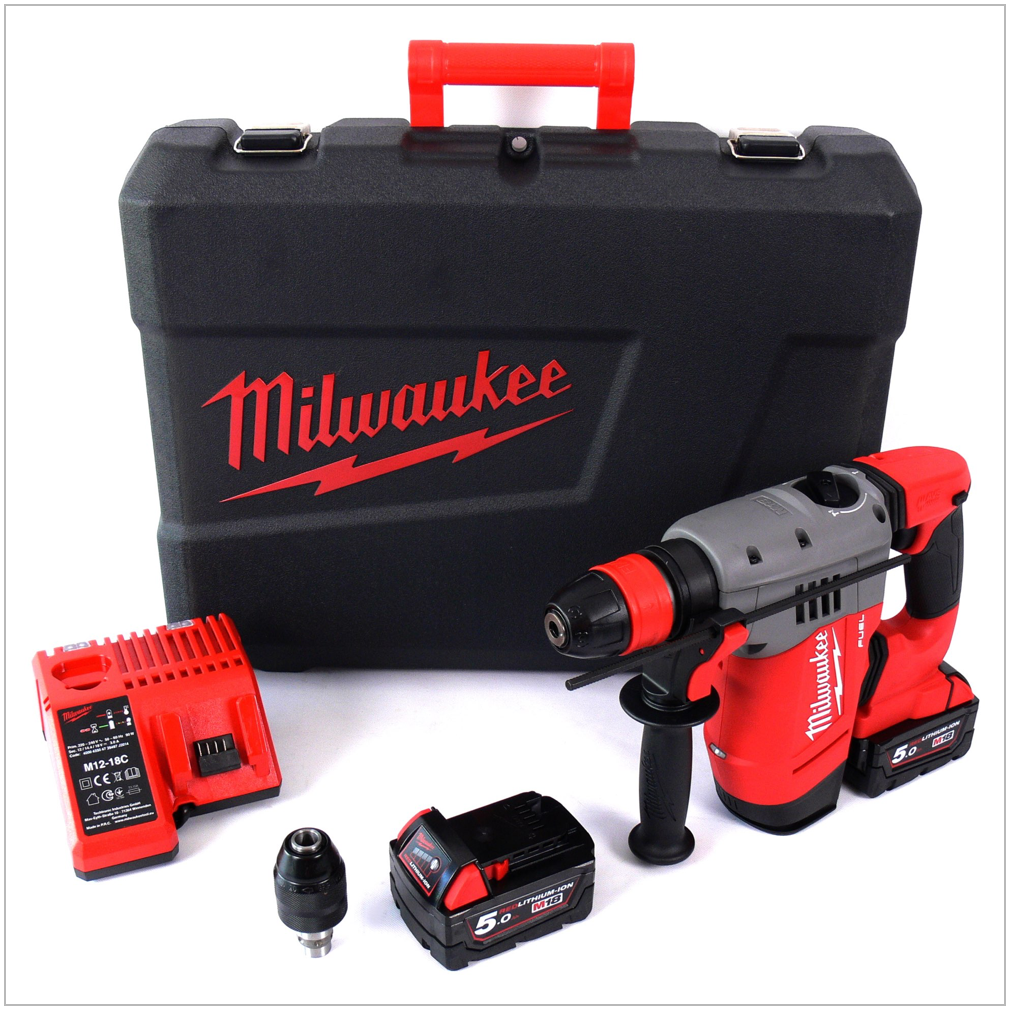 Milwaukee M18 CHPX-502C FUEL Brushless Akku Bohrhammer mit 2 x 5 Ah Akku, Lader, Koffer