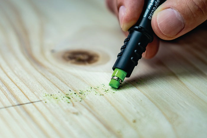 ideal für feines und präzises Anzeichnen, ohne Anspitzen (der Minendurchmesser von nur 0,9 mm macht das Anspitzen komplett überflüssig) · mit Staub- und Nässeschutz (Drückerknopf = Schirmkappe) · Dichtring am Schaft · integrierter Radierer · praktischer Köcherschoner für Ein-Hand-Bedienung · High-Tech-Druckmechanik für den automatischen Minenvorschub · nachfüllbar · Schaft mit Rollstopp