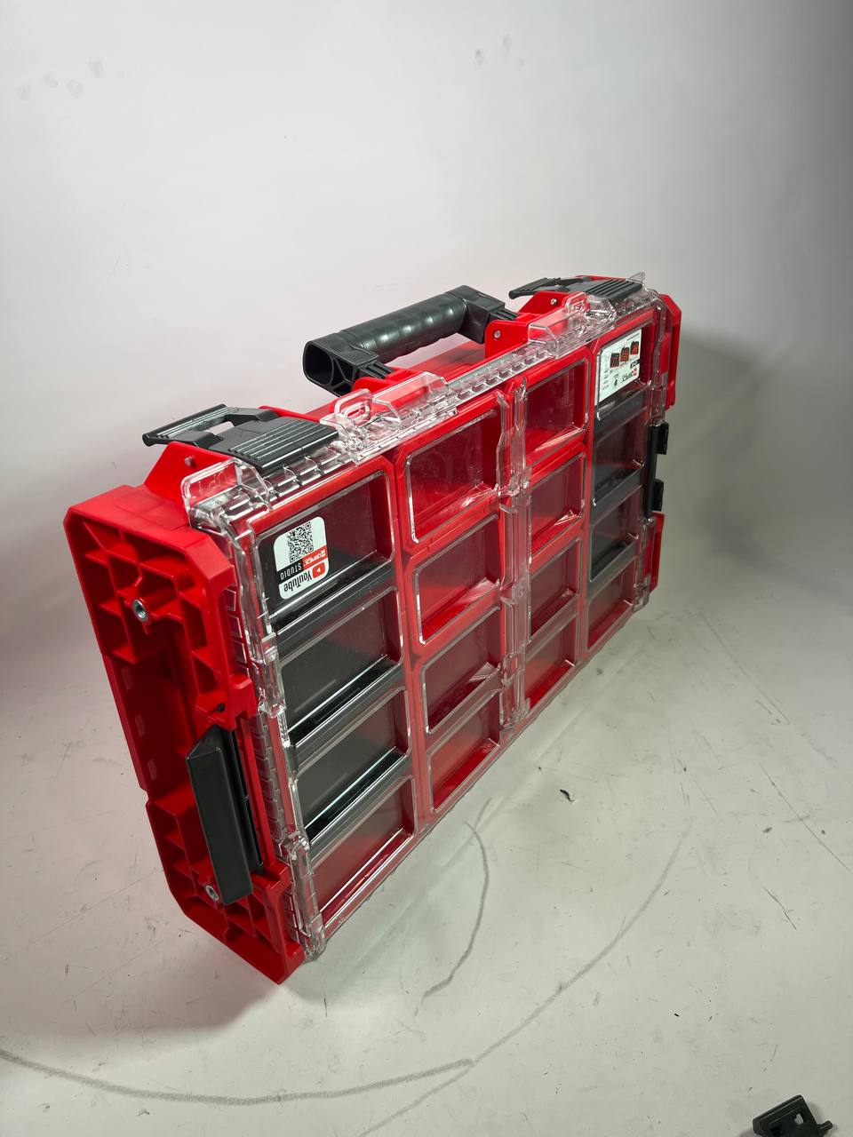 RED ULTRA HD ist eine Sonderedition von Qbrick System ONE-Produkten aus ultrabeständigem Kunststoff, der sich durch außergewöhnliche Beständigkeit gegen mechanische Beschädigungen auszeichnet. Die durchgeführten Schlagtests bestätigen seine außergewöhnliche Haltbarkeit, auch bei Bedingungen unter 0 °C. Qbrick System ONE Organizer XL ist eines der größten Modelle aus der Familie der modularen Organizer, die untereinander, aber auch mit allen Kommoden der ONE-Linie kombiniert werden können. Die in die Polycarbonatabdeckung eingebaute Dichtung bietet vollen Schutz gegen das Eindringen von Wasser und Staub. Die Version 2.0 der ONE-Produktlinie ist eine neue Generation von Werkzeugkästen und Organizern mit einem verstärkten Design. Durch die zusätzliche Anpassung der Gehäuse an M8-Gewindeeinsätze kann das System an die Bedürfnisse des Anwenders angepasst werden. Die Custom-Version dieses Kastenmodells ist mit vier M8-Gewindeeinsätzen ausgestattet, die eine individuelle Anpassung durch den Benutzer ermöglichen. Der XL-Organizer ist mit neuen, zwei langen Eimern ausgestattet, die jeweils über 30 cm messen. Außerdem enthält der Organizer 2 mittlere und 4 kleine Eimer.