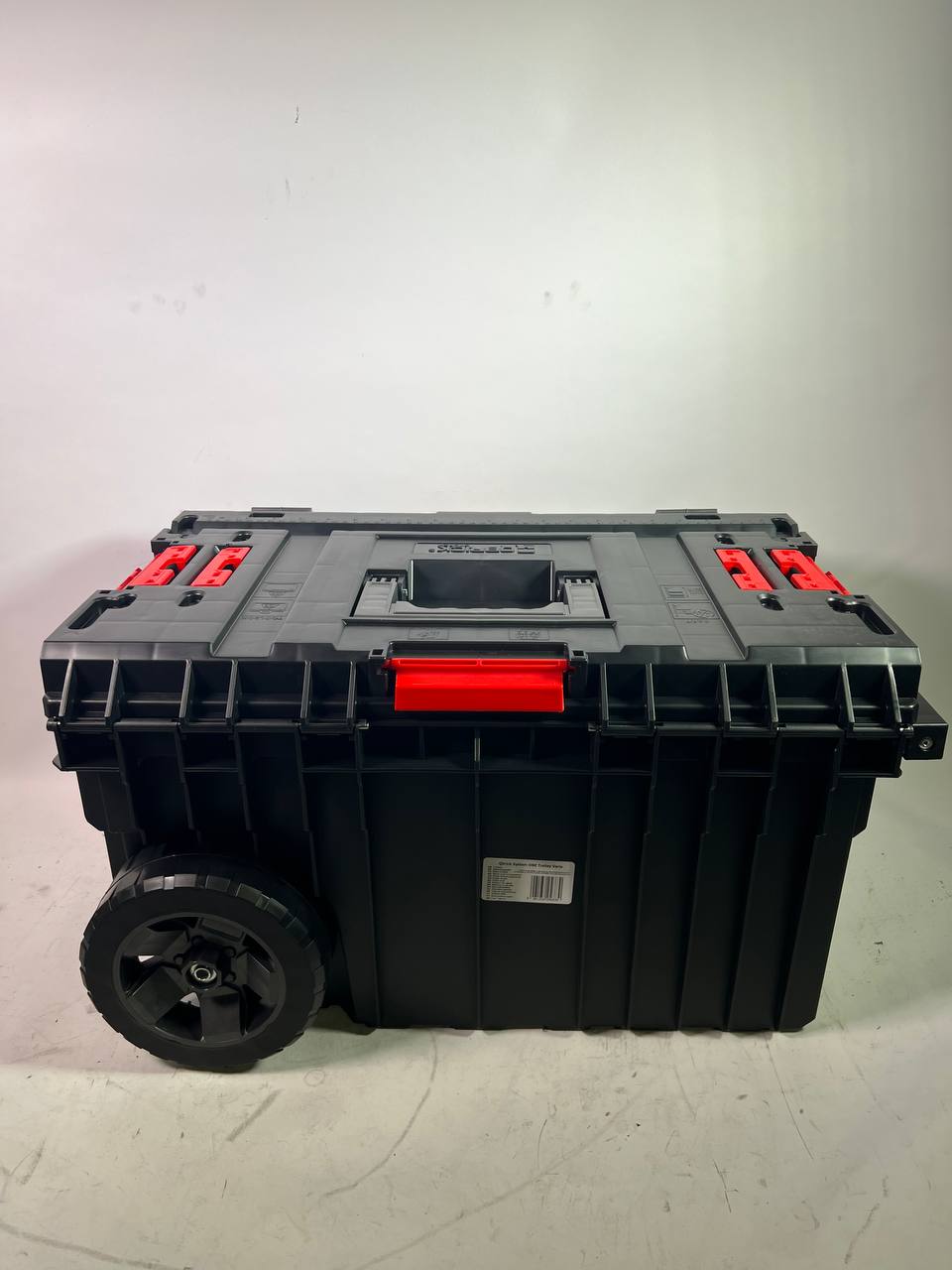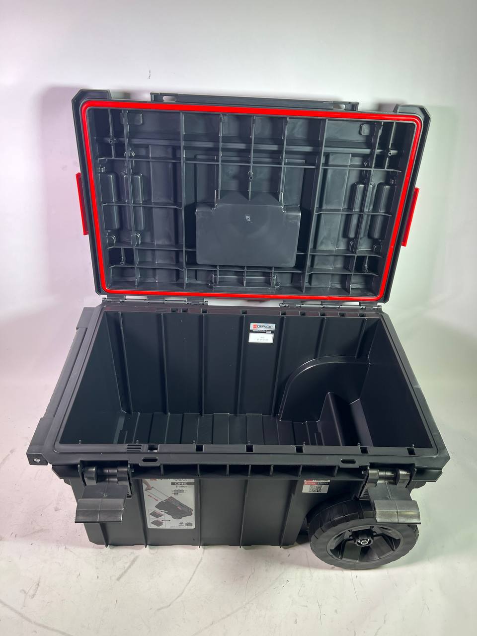 Große Werkzeugkiste auf Rädern für hervorragende Mobilität der Qbrick-Baukastensysteme. Zwei auf einer Metallachse montierte Auflaufräder ermöglichen den sicheren Transport von Boxensets und Organizern. Der seitlich ausziehbare Teleskopgriff aus Aluminium bietet bequemen Zugang zum Inneren der Box und ermöglicht das bequeme Tragen der Box in Verbindung mit anderen Elementen der ONE-Linie, die mit Polyamidverbindern befestigt sind. Der einfache Auszugsgriffmechanismus des Doppelteleskops rastet ein, wenn Sie leicht von unten auf den Griff schlagen. Der Inhalt der Box ist mit einer praktischen Schale und einer flexiblen Dichtung ausgestattet, die den Inhalt der Box vor dem Eindringen von Staub und Wasser schützt. Die Standard-VARIO-Abdeckung ist mit zusätzlichen Anschlüssen ausgestattet, die es ermöglichen, diese Version der Abdeckung mit den Toolbox-Modellen aus der Qbrick System PRO-Linie (500, Toolcase, Toolbox, Organizer 100, 200, 300 und alternativ PRO 600) zu verbinden. Dies ist eine einzigartige Version der Box, dank der der Benutzer Elemente aus zwei Produktlinien kombinieren kann.