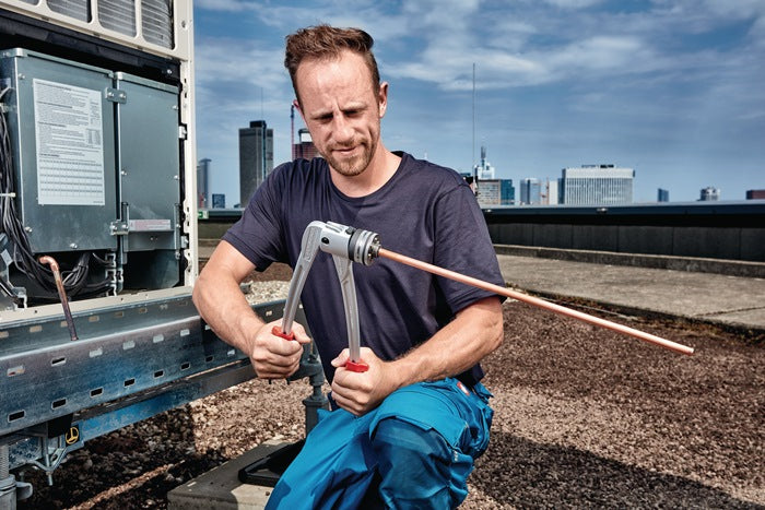 zum Aufweiten und Kalibrieren von weichen und halb- harten Rohren Ø 8 - 42 mm (5/16 - 1 3/4”) sowie zur Herstellung von Reduzierungen · Kosten für Fittings und Lagerhaltung entfallen · Umarbeiten von Rohrstücken zu Muffen · sichere Rohrverbindung nach DVGW · Robust, leicht und verschleißarm · exaktes Einstellen des Kapillarspalts · bis zu 50 % Einsparung der Kosten für Arbeitszeit, Lötmaterial, Lötstellen und Energie gegenüber Fittingverbindung · ​​​​​​​EPT-Technologie – innenliegender Kniehebel