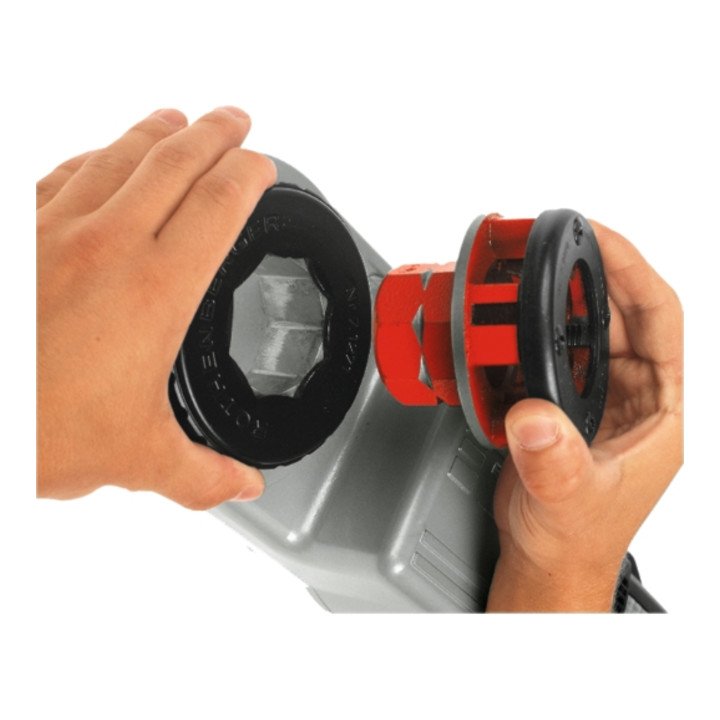 elektrisch · Elektro-Gewindeschneidkluppe Ø 1/4″ - 2″ · zum schnellen und mühelosen Herstellen von präzisen, normgerechten und sicheren Gewindeverbindungen Anwendungsvorteile: sicherer Halt in beiden Drehrichtungen durch gehärteten prismenverzahnten Gegenhalter · fester Sitz der Schneidköpfe durch Direktaufnahme mit Sprengring-Arretierung · Gewindeschneiden nahe an der Wand möglich durch außermittige Schneidkopfaufnahme · ideal für schwer zugängliche Stellen (Ecken, Schächte) · anwenderfreundliches Arbeiten durch großen Umschalter für Vor- und Rücklauf · zuverlässiger Motor für den Dauereinsatz Einsatzbereiche: Zum Gewindeschneiden von BSPT rechts, BSPT links: Ø 1/4″ - 2″ - NPT: Ø 1/4″ - 2″ Set beinhaltet: SUPERTRONIC® 2000, Gegenhalter, ROFIX-Adapter, Präzisions-Gewindeschneidköpfe 1/2″, 3/4″, 1″, 1 1/4″, 1 1/2″, 2″, Systemkoffer ROCASE