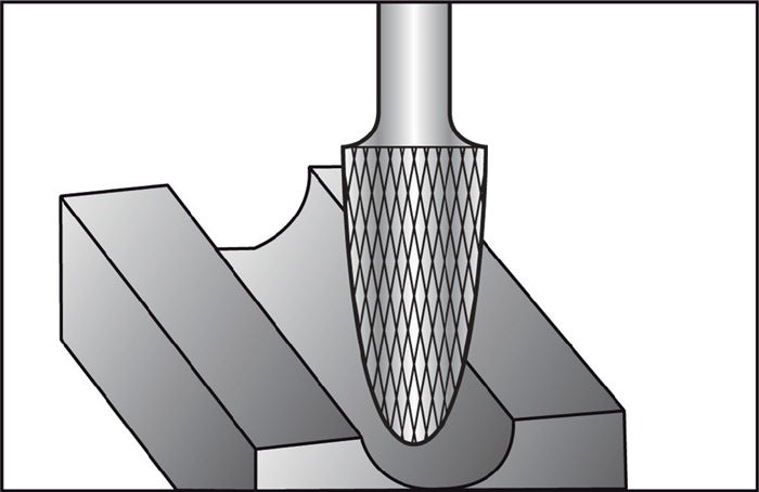 Hartmetall · Form F (RBF nach DIN 8033) · Rundbogenform · mit Kreuzverzahnung · Schaft-Ø 6 mm (bei Art. 4000 602 852 = 3 mm)