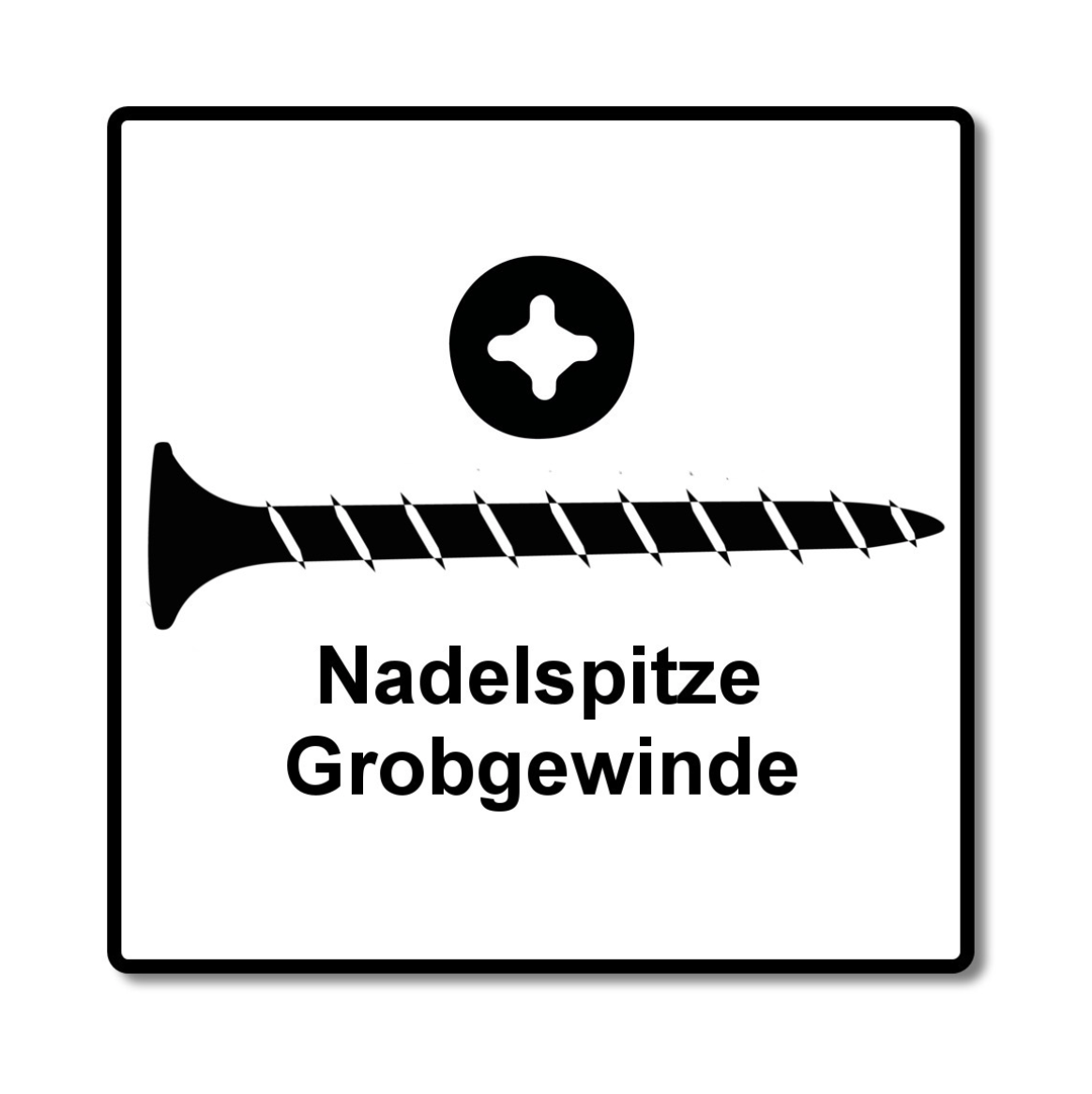 SPAX GIX-B Schnellbauschrauben magaziniert, 3,9x45mm, Nadelspitze, 1000 Stück ( 1891170390456 ) Vollgewinde, Trompetenkopf, Kreuzschlitz H2