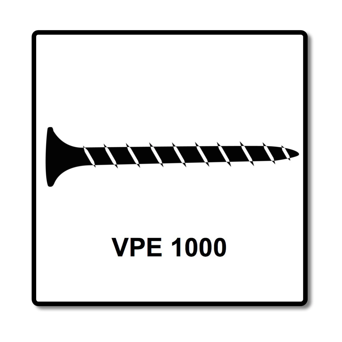 - 1x SPAX GIX-B Grobgewinde magaziniert, 3,9x45 mm, 1000 Stück, Vollgewinde, Trompetenkopf, Kreuzschlitz H2, Nadelspitze, Phosphatiert schwarz ( 1891170390456 )