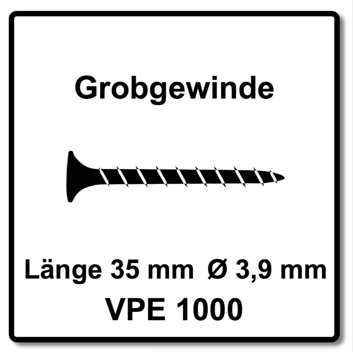 Technofast HBGF3935TE 1000 x Schnellbauschrauben Magazinschrauben 3,9 x 35 PH2 Grobgewinde
