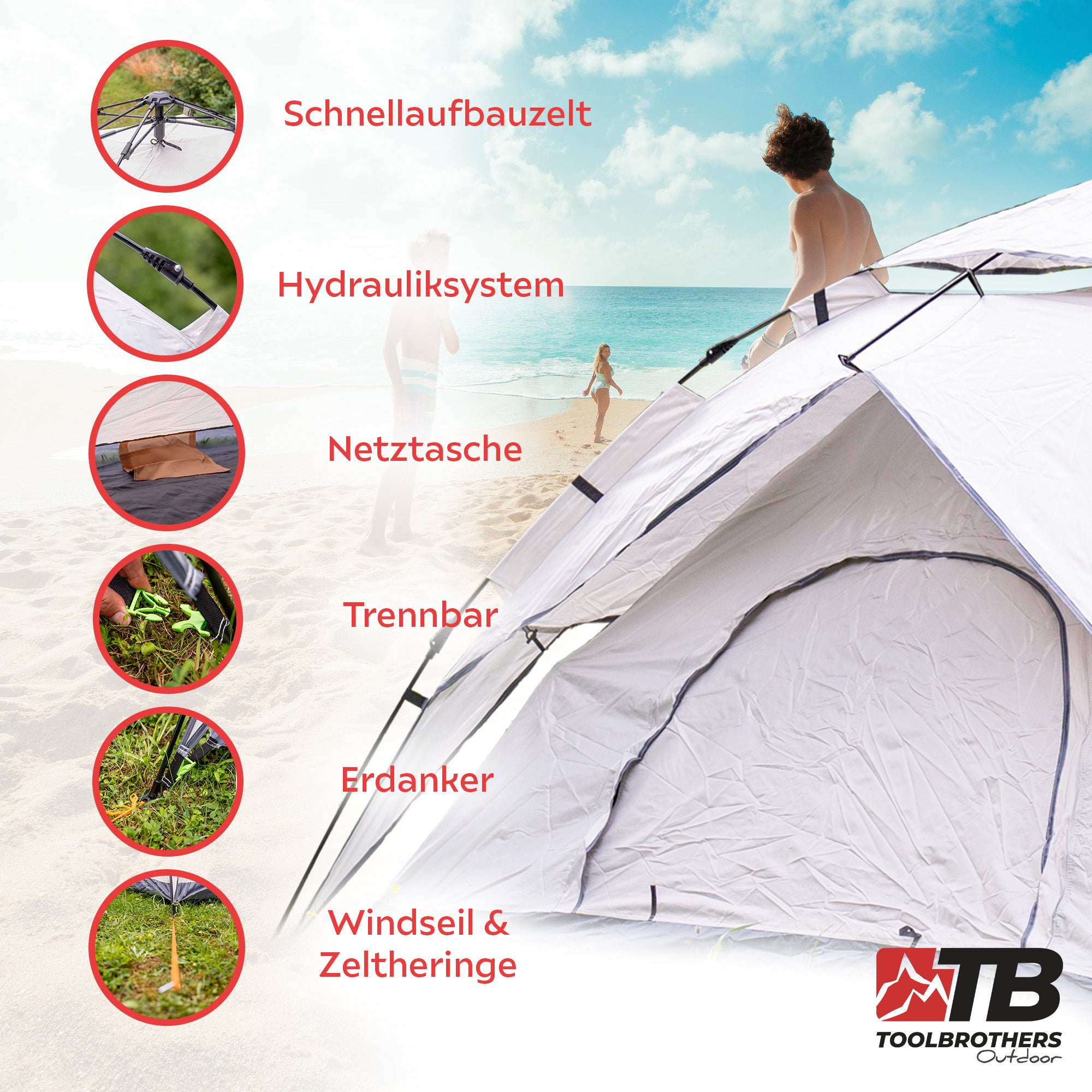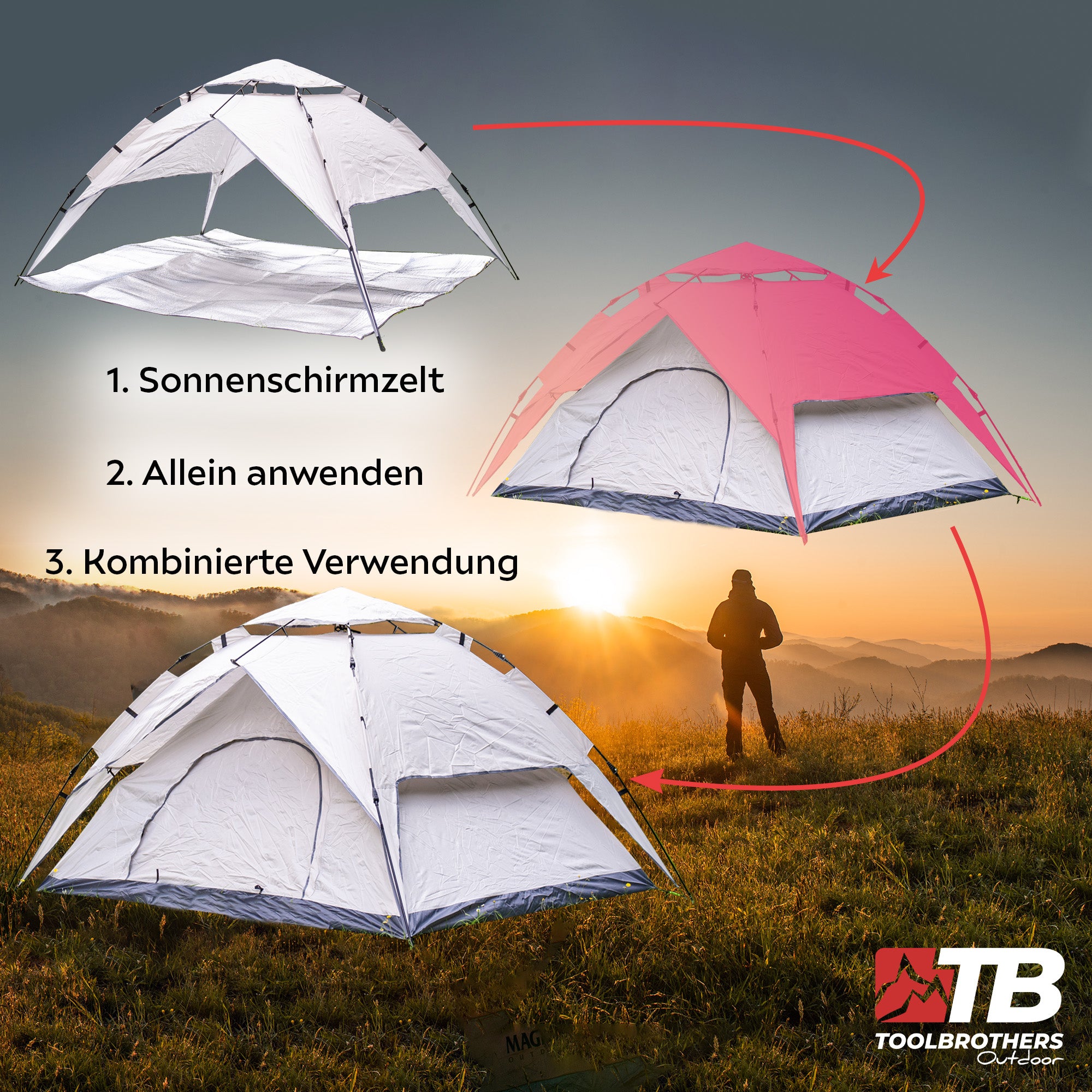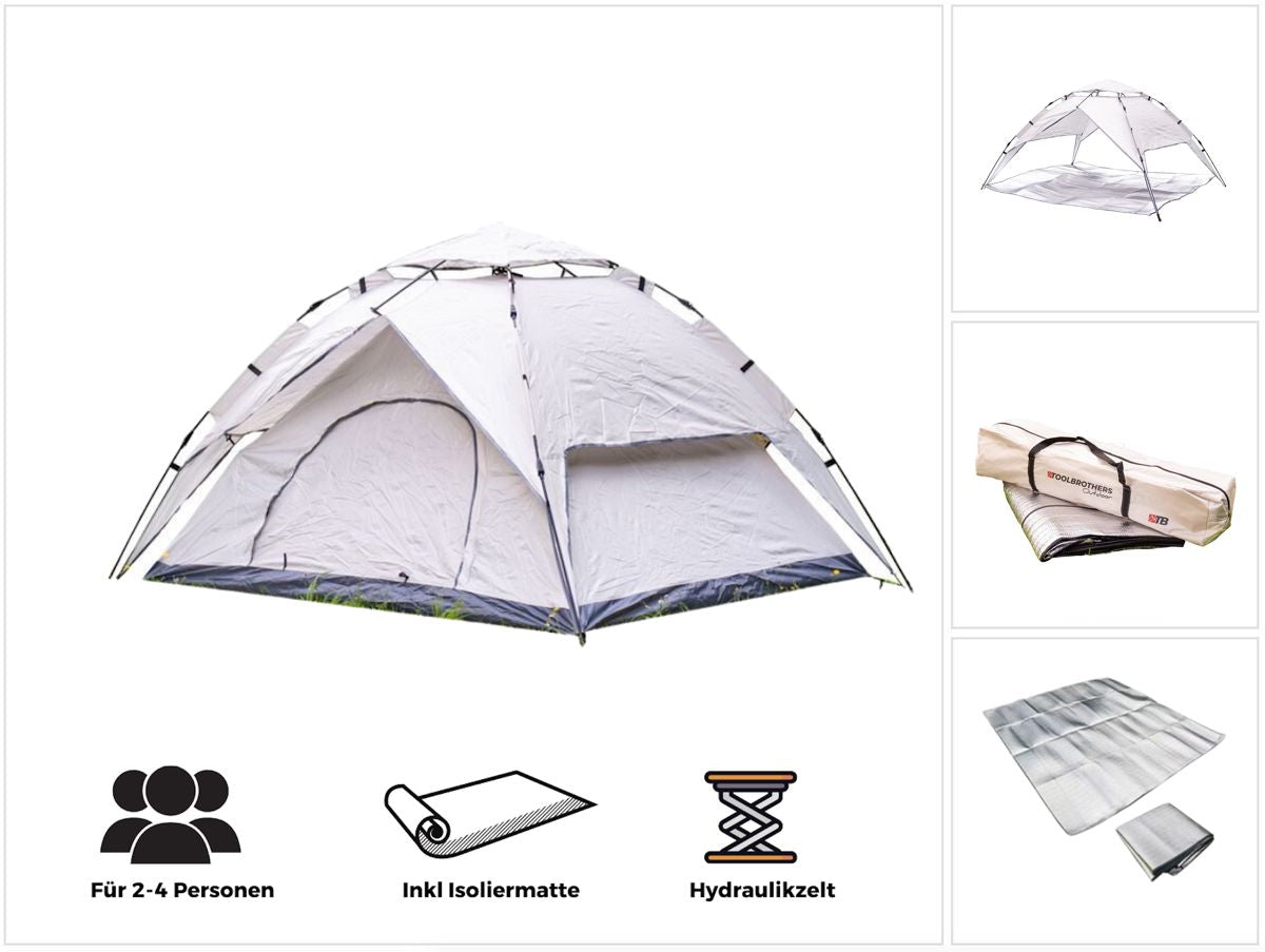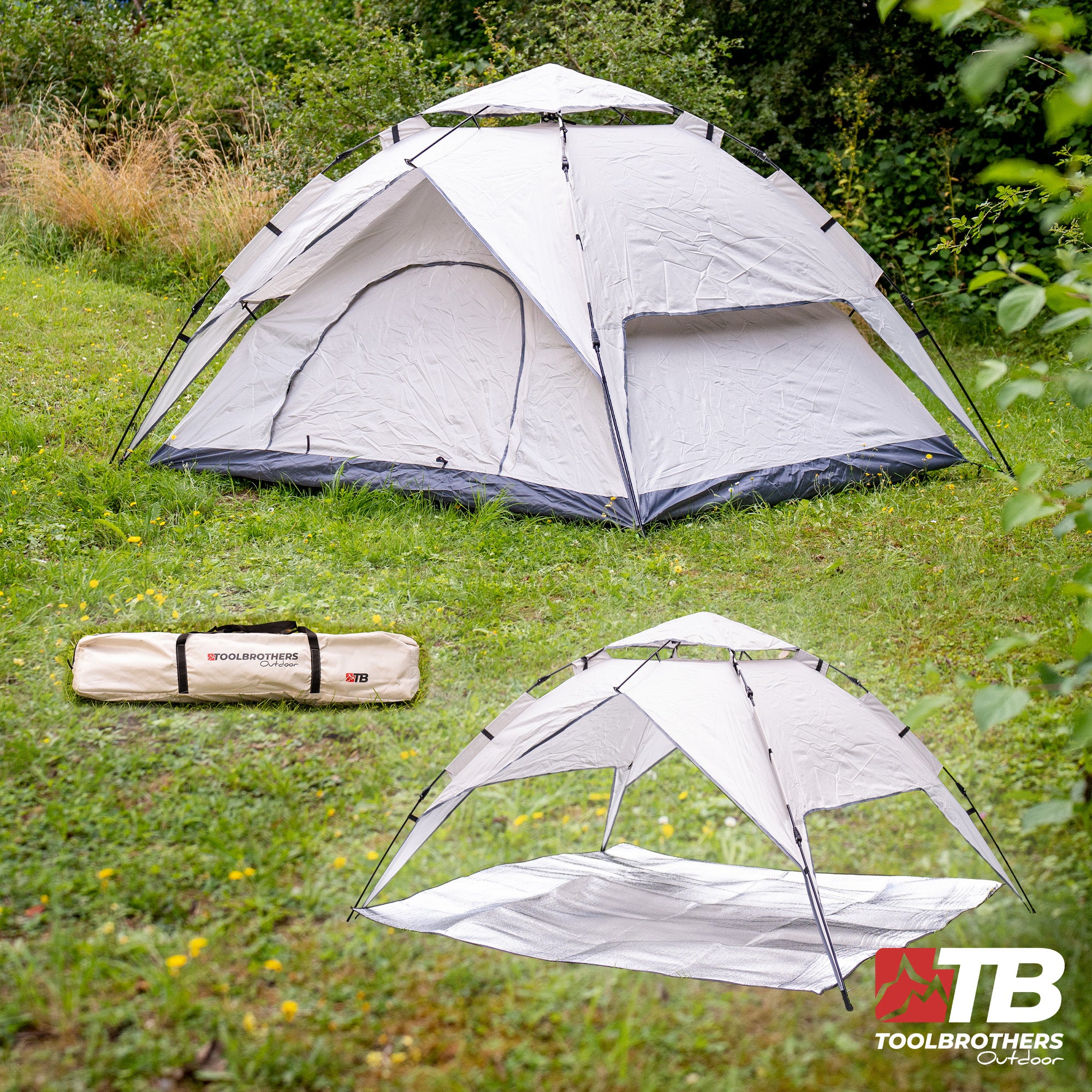 Toolbrothers Outdoor Camping Zelt für 2-4 Personen Kuppelzelt Hydraulikzelt Pop-Up zelt Wasserdicht, 2000 mm Wassersäule + Isoliermatte