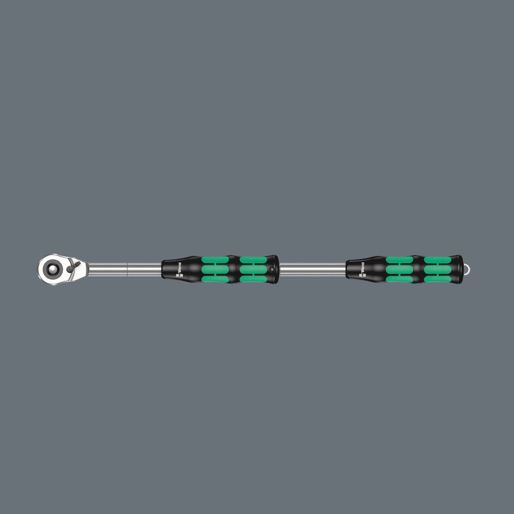Besondere Produktvorteile: - alle Steckschlüsseleinsätze mit Haltefunktion für die Schraube - alle Steckschlüsseleinsätze mit Wera Werkzeugfinder „Take it easy“ - Knarre bei Bedarf verlängerbar Inhalt: 1 Hebel-Umschaltknarre (72 Zähne) mit Aufnahme für eine Knarrenverlängerung je 1 6-kant Steckschlüssel-Einsatz SW 10 / 11 / 12 / 13 / 14 / 15 / 16 / 17 / 18 / 19 mm 1 Knarrenverlängerung Länge 271 mm mit Entriegelungsstift 1 Verlängerung mit Schnelldrehhülse 250 mm Lieferung in kompakter Box mit textilem Außenmaterial