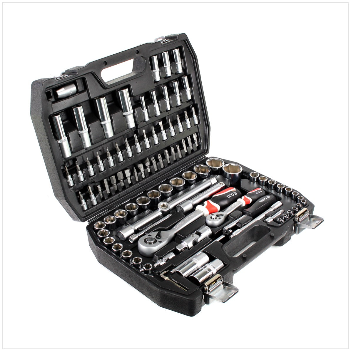 - 1x Yato YT-1268 Werkzeugkasten Steckschlüssel Satz 94 tlg. mit Knarren 1/4" + 1/2"