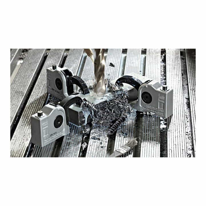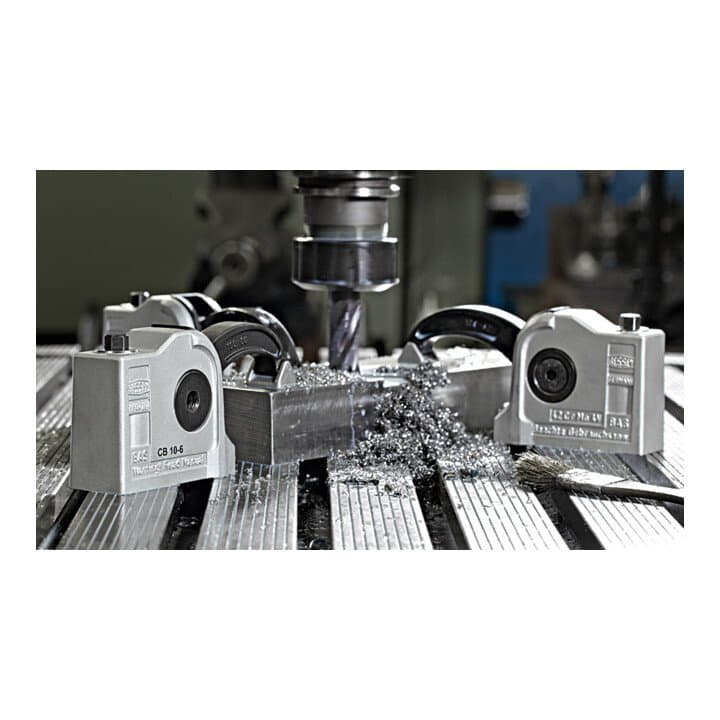Spannkraft stufenlos erreichbar bis 16 kN · die äußerst kompakte Bauweise ca. 30% weniger Grundfläche ca. 50% kleineres Volumen ermöglicht optimale Ausnutzung des Arbeitsbereiches · Gehäuse und Druckarme aus Edelstahl 42 CrMo 4, vergütet, dadurch extrem belastbar und langlebig · für größere Spannhöhen sind Aufspann-Sockel lieferbar · Befestigungsbohrung geschlossen