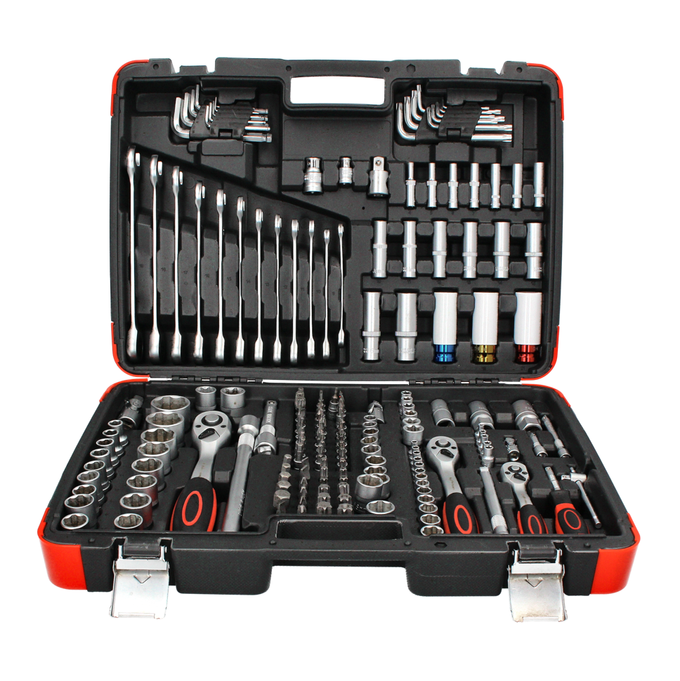 Die Firma BGS technic bietet hier einen 176-teiligen Steckschlüssel Satz mit 3 unterschiedlichen Knarren ( 1/4", 3/8" und 1/2" ). Durch eine breite Auswahl an unterschiedlichen Aufsätzen und Verlängerungen, hat man hier für viele Einsatzgebiete das passende Werkzeug zur Hand. Die Werkzeuge sind aus Chrom Vanadium Stahl gefertigt was für eine hohe Langlebigkeit und Bruchsicherheit sorgt. Durch das Wellenprofil der Bits findet eine optimale Kraftübertragung auf die Schraube statt, wodurch der Abrieb verringert wird. BGS technic ist ein führender Hersteller für Handwerkzeug, eine hohe Verarbeitungsqualität und lange Tradition zeichnen das Unternehmen aus.