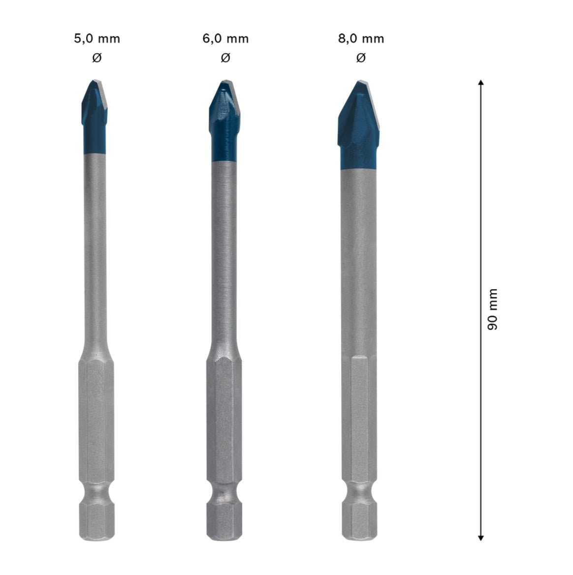 - 3x Bosch EXPERT HardCeramic HEX-9 Bohrer 90 mm ( 5,0 / 6,0 / 8,0 mm  )