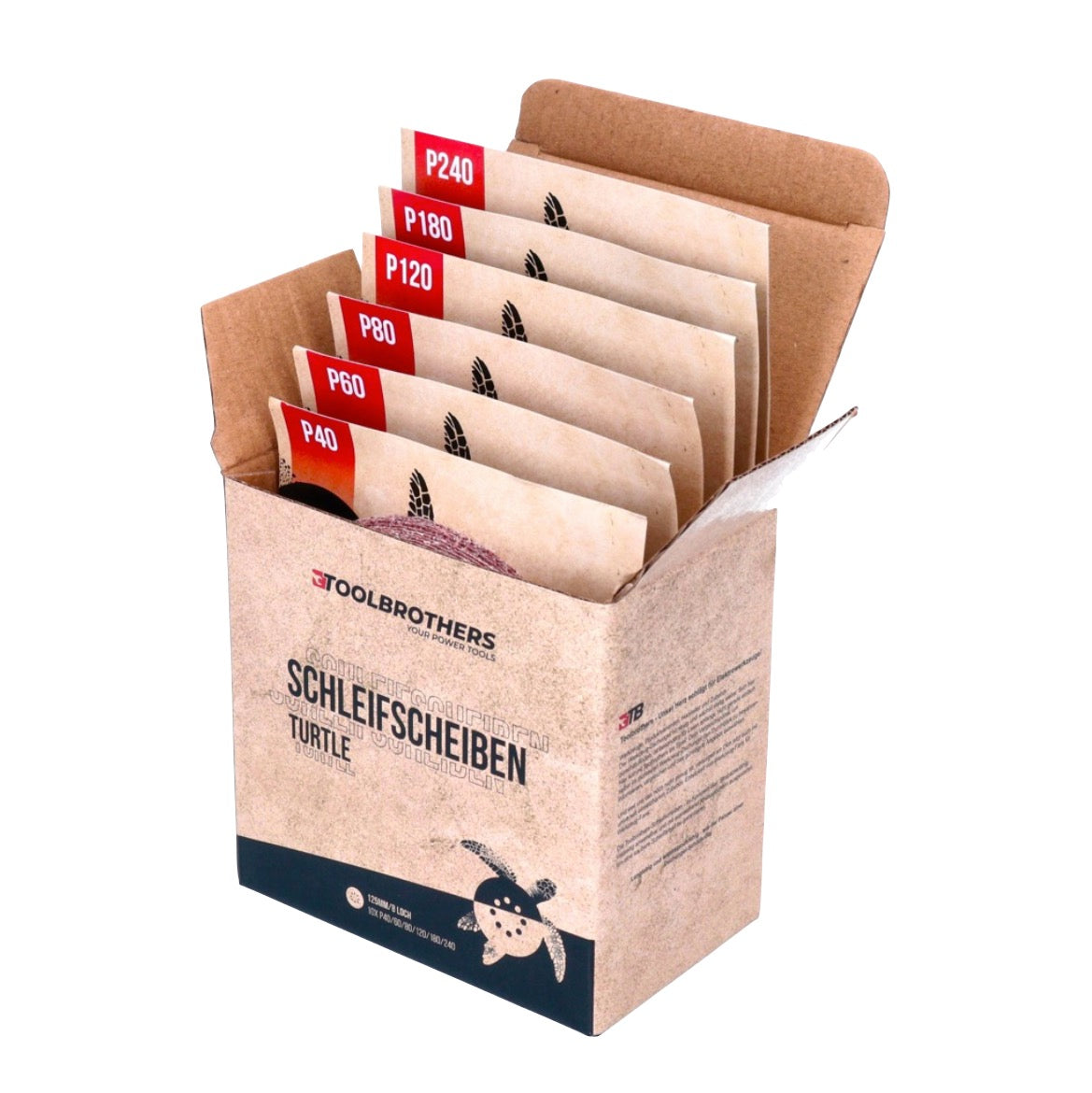 Bosch GEX 18V-125 Professional Akku Exzenterschleifer 18 V 125 mm Brushless + 4x Toolbrothers TURTLE Schleifset + L-BOXX - ohne Akku, ohne Ladegerät