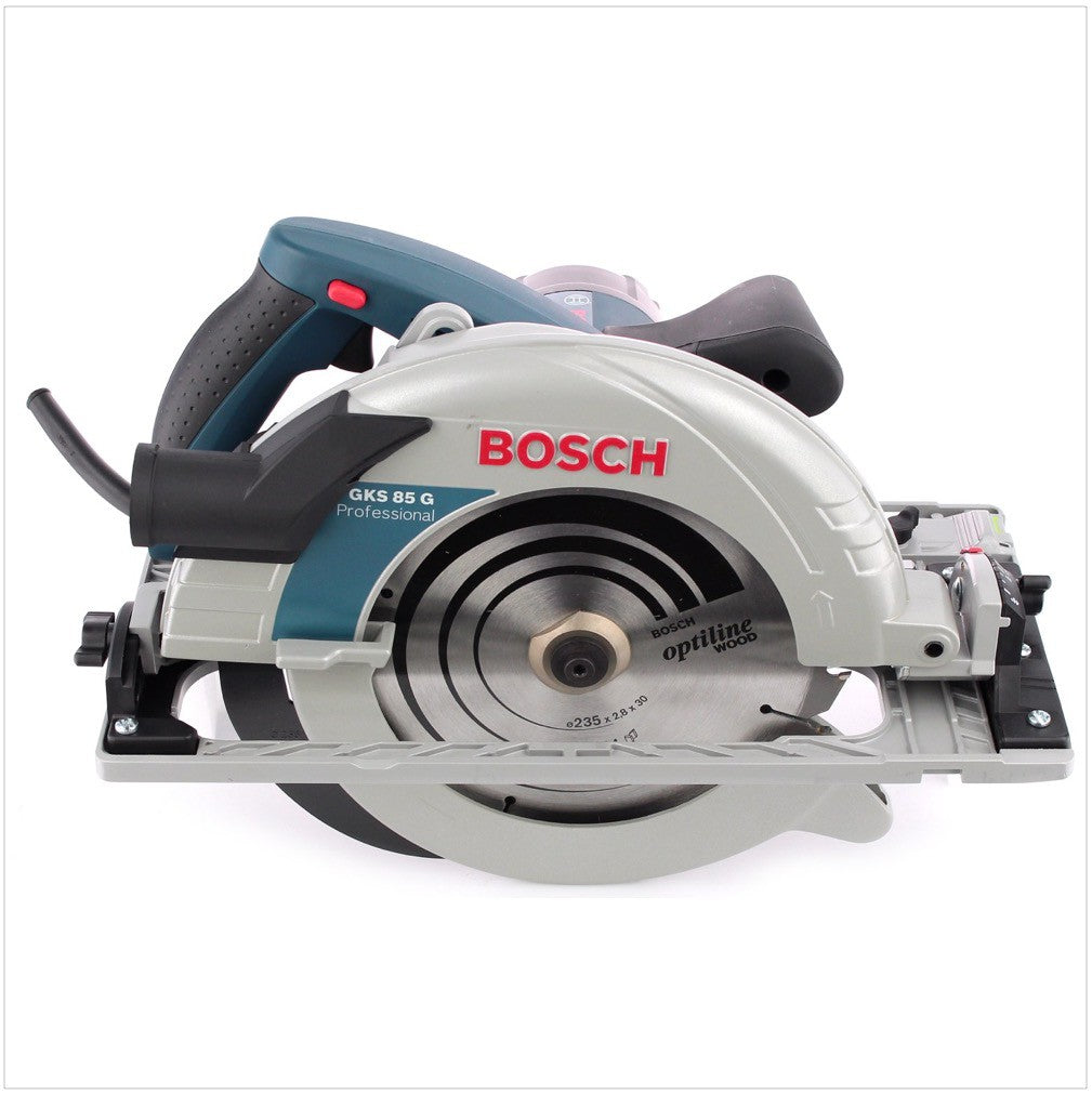 Die GKS 85 G Professional ist eines der Kraftpakte aus dem Hause Bosch, optimiert für Führungsschienen. Die Konstruktion sorgt für ein exaktes Zusammenspiel mit dem neuen Bosch Führungsschienensystem FSN, als auch mit den Schienen anderer Hersteller, wobei Gehrungsschnitte mit der Führungsschiene ohne Adapter möglich sind. Die Fußplatte der GKS 85 G ist aus Aluminium Druckguss mit exakt gefrästen Nuten für Führungsscheinen gefertigt. Die Kraft bezieht die GKS 85 G aus einem Motor der mit 2.200 Watt angetrieben wird, was einen hohen Sägefortschritt gewährleistet.