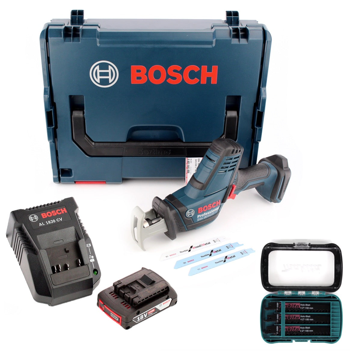 Bosch GSA 18V-Li C Akku Reciprosäge 18V Säbelsäge in L-Boxx + 1x 2,0 Ah Akku + Ladegerät + 27 tlg. Makita Sägeblatt-Set