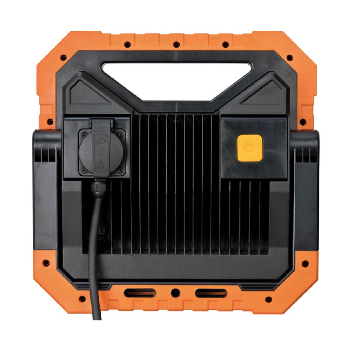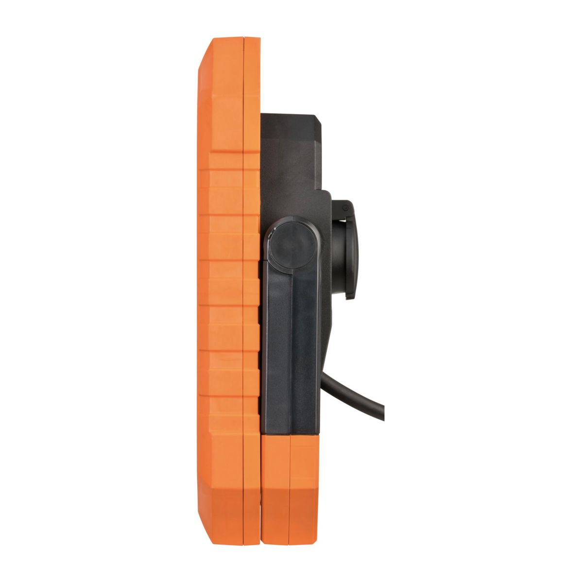 Der Mobile LED Strahler X 8000 M ist eine extrem robuste LED Arbeitsleuchte mit 80 Watt Leistung, die höchsten Ansprüchen gerecht wird. Mit zusätzlichem Kantenschutz aus hochwertigem Kunststoff eignet sie sich sowohl für den Innen- als auch Außeneinsatz. Er ist mit einem ausklappbarem, verstellbarem Haltebügel zum Aufstellen oder Befestigen auf brennenstuhl Stativen ausgestattet. Der Arbeitsstrahler mit Ein/Aus Schalter ermöglicht eine anwenderspezifische Ausleuchtung mit stufenloser Dimm Funktion von 10 bis 100 Prozent. Die verbauten LEDs überzeugen durch ihre außergewöhnlich lange Lebensdauer und ihre spezielle Lichtstreuung für großflächige Ausleuchtung. Der LED Baustrahler überzeugt mit seinen 8300 Lumen unter jeden Lichtverhältnissen. Das fünf Meter lange ölbeständige RN-Kabel lässt eine ausgesprochen gute Bewegungsfreiheit zu. Zusätzlich ist noch eine spritzwassergeschützte Steckdose auf der rückseite verbaut, wodurch sich lästige Kabeltrommeln vermeiden lassen und ein effizienteres Arbeiten ermöglicht. Die X 8000 M ist mit einem Stoßfestigkeitsgrad IK07 zertifiziert, was eine Schlagenergie von 2,0 Joule entspricht. Brennenstuhl steht für Qualitätsarbeit, die Produkte aus dem Hause setzten sich weit von anderen Massenprodukten ab.