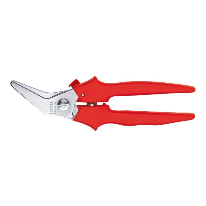 Schneiden aus Edelstahl rostfrei · für Industrie, Handwerk und Haushalt · schneidet Papier, Pappe, Stoff, Feinblech, Zweige, Leder, Teppichboden usw. · schlagfeste Kunststoffgriffe