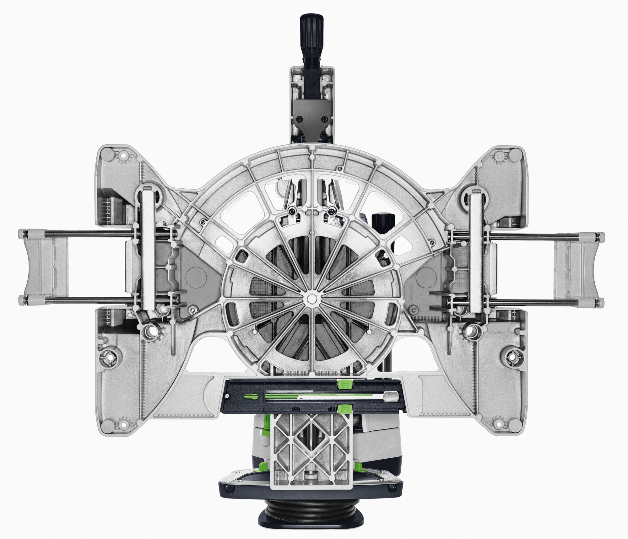 - Vorne bedienbare Feineinstellung für millimetergenaue Einstellung des Sägeblattwinkels