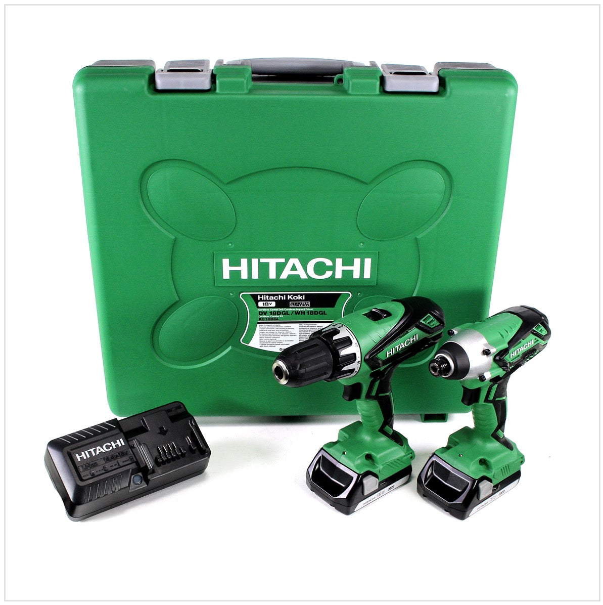 Hitachi KC 18 DGL / JA Set mit 1x Hitachi WH 18 DGL + 1x Hitachi DV 18 DGL + 2x Hitachi BSL 1815 1,5 Ah Akku + 1x Hitachi UC 18YKSL Akku Ladegerät 14,4 - 18 V