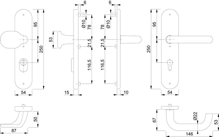 HOPPE Schutzgarnitur Paris 86G/3332ZA/3310/138 Aluminium F1 ( 3000209112 )