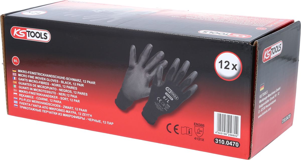 KS TOOLS Mikro-Feinstrickhandschuhe-schwarz, 9, 12 Paar ( 310.0470 )