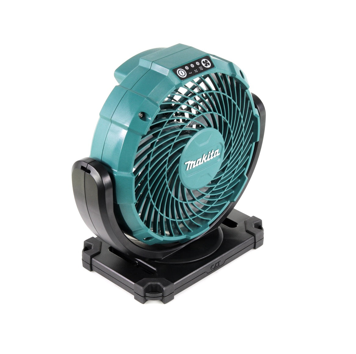 Der Makita Lüfter CF 100 hat eine maximale Luftgeschwindigkeit von 180 m/s. Diese ist in 3 Stufen regelbar. Der Ventilator ist nach unten 45°und nach oben 90° neigbar. Er schwenkt automatisch 90° rechts bis 90° links. Zudem ist er mit Akku oder auch mit Netzteil zu betreiben.