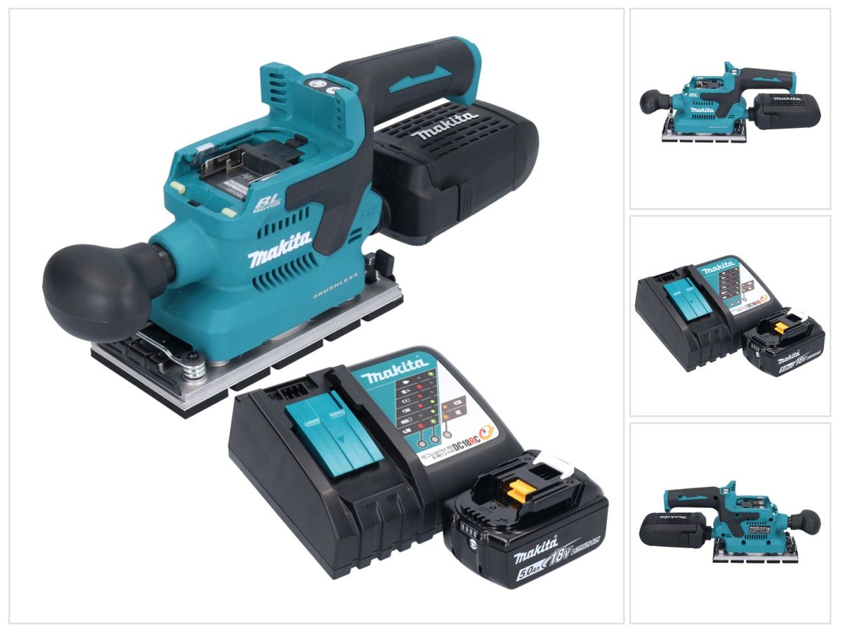 Makita DBO 381 RT1U Akku Schwingschleifer 18 V 93 x 185 mm Brushless + 1x Akku 5,0 Ah + Ladegerät
