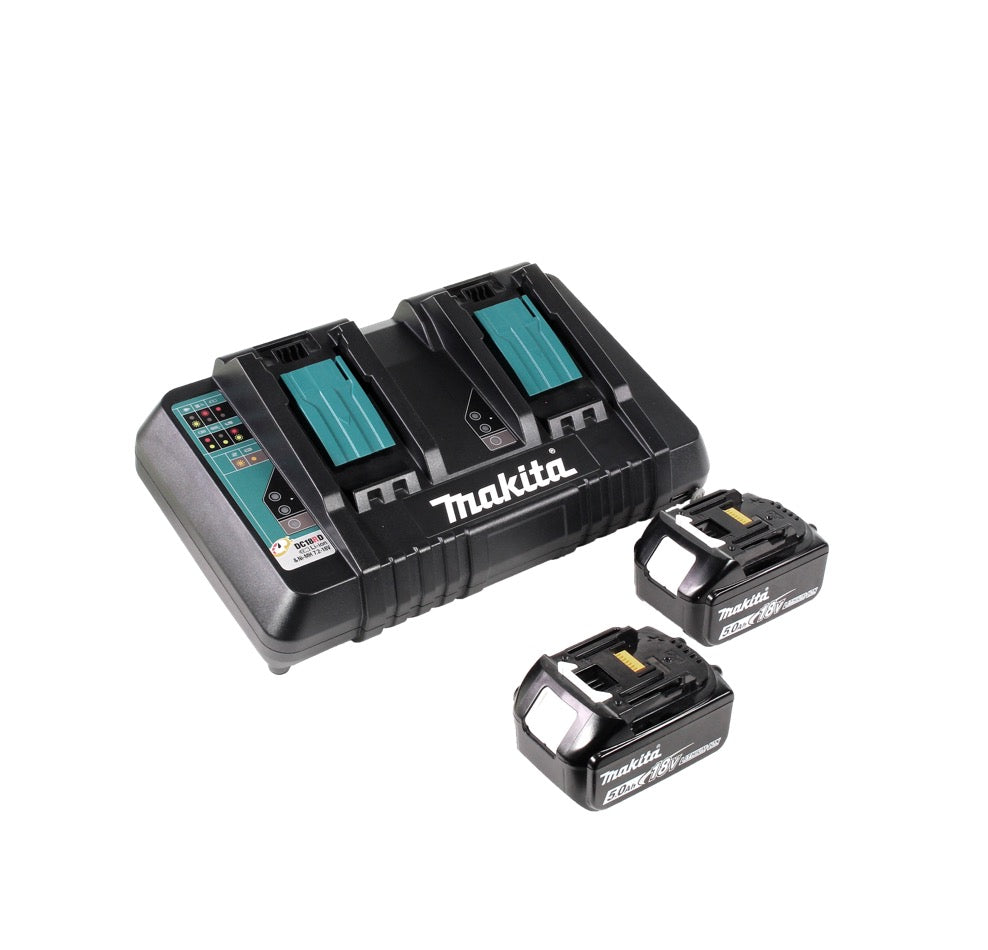 Makita DGA 900 PTK Akku Winkelschleifer 36 V ( 2x 18 V ) 230 mm Brushless + 2x Akku 5,0 Ah + Doppelladegerät + Koffer
