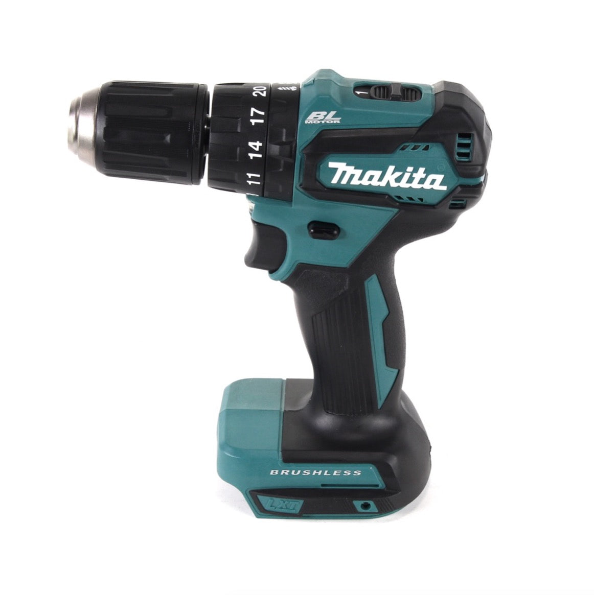 Der Makita Akku Schlagbohrschrauber DHP 483 Z verfügt über ein abschaltbares Schlagwerk, Rechts- /Links-lauf und elektronische Drehzahlregulierung. Das Drehmoment ist in 20 Stufen plus Bohrstufe einstellbar. Durch den gummierten, ergonomischen Handgriff und die kompakte Bauweise ist sicherer Halt und komfortables Arbeiten garantiert. Der verbaute kohlenbürstenfreie ( brushless ) Motor arbeitet effizient und nahezu verschleißfrei. Eine verbaute LED sorgt dazu im Dunkeln für optimale Sichtverhältnisse. Das Komplettset mit 5,0 Ah Akku, Schnellladegerät und 101-teiligem Zubehör deckt alles ab, was der Profi zum Arbeiten braucht.