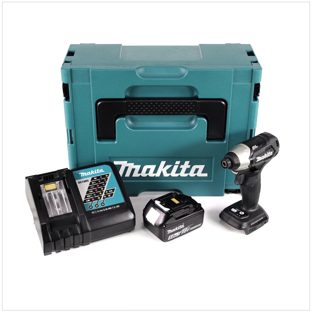Makita DTD 155 RT1JB Akku Schlagschrauber 18 V Brushless Sonderausgabe schwarz im MAKPAC + 1x BL1850 5,0 Ah Akku + 1x DC 18 RC Ladegerät