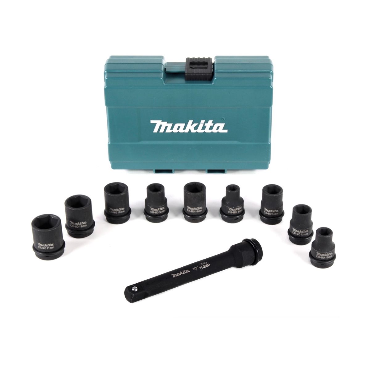 Makita DTW 450 RF1 18V Akku Schlagschrauber 440Nm 1/2" 18V + 1x Akku 3,0Ah + Schnellladegerät + Steckschlüssel Nuss Set + Verlängerung 150mm - ohne Koffer