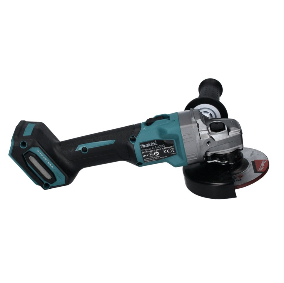 Makita GA 005 GD101 Akku Winkelschleifer 40 V max. 125 mm Brushless XGT + 1x Akku 2,5 Ah + Ladegerät + Absaughaube + Makpac