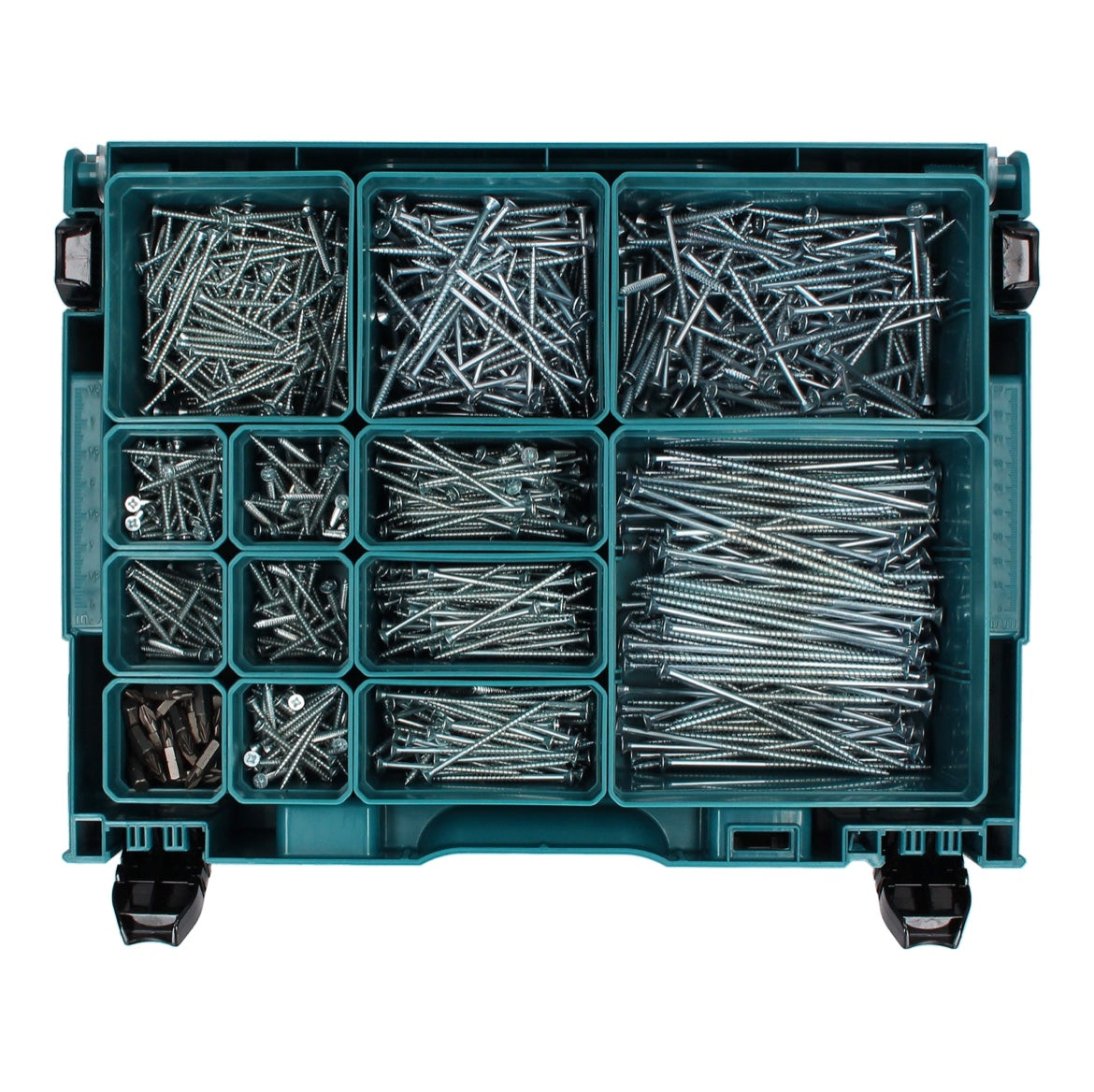 Makita MAKPAC 1 Organizer Kleinteile Koffer 395 x 295 x 110 mm ( 191X80-2 ) + 1000 tlg. Holz Schrauben Sortiment