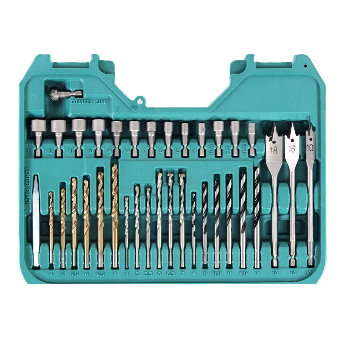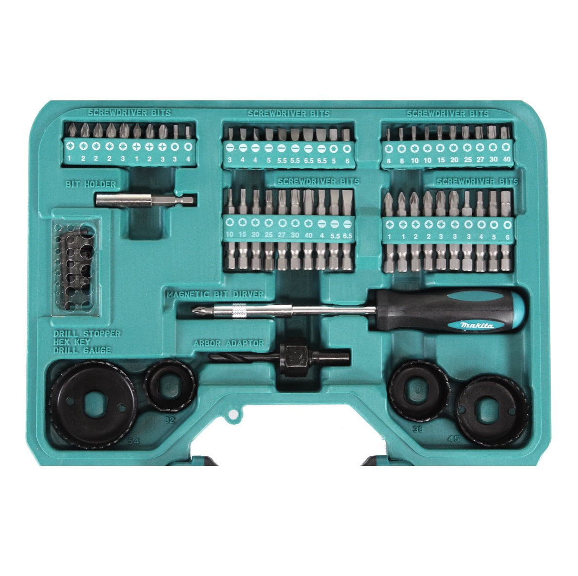 Das 100-teilige Bit und Bohrer Set von Makita lässt kaum einen Wunsch offen. Mit insgesamt 50 Bits in 4 verschiedenen Aufnahmen, einer Reihe an Bohrern, Steckschlüsseln, Lochsägen und einigen Spezialteilen findet man im P 90249 immer das richtige Zubehörteil.