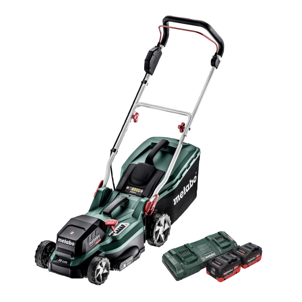 Metabo RM 36-18 LTX BL 36 Akku Rasenmäher 36 V ( 2x 18 V ) LTX Brushless + 2x Akku 10,0 Ah + Doppelladegerät