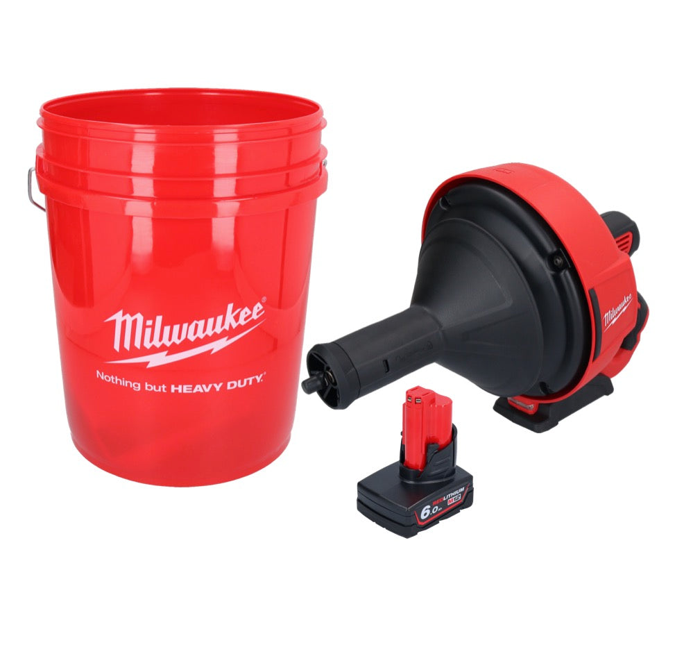 Milwaukee M12 BDC8-601C Akku Rohrreinigungsgerät 12 V + 1x Akku 6,0 Ah + Spirale + Eimer - ohne Ladegerät