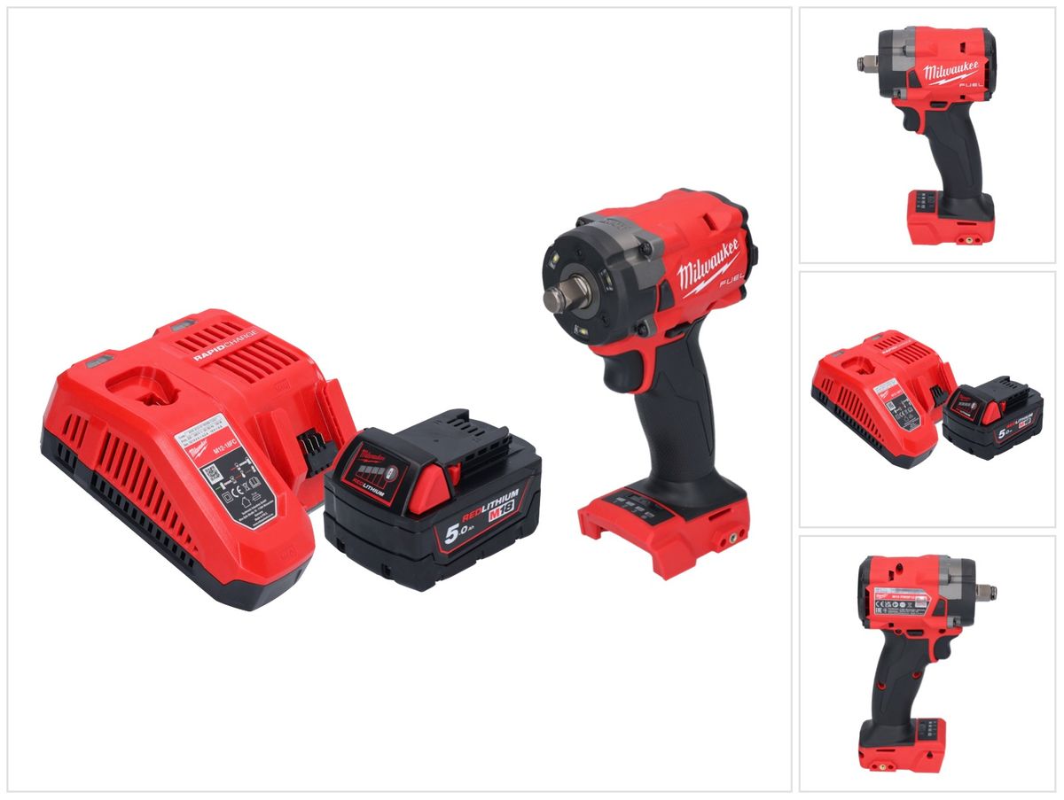 Milwaukee M18 FIW2F12-501 Akku Schlagschrauber 18 V 339 Nm 1/2" Brushless + 1x Akku 5,0 Ah + Ladegerät