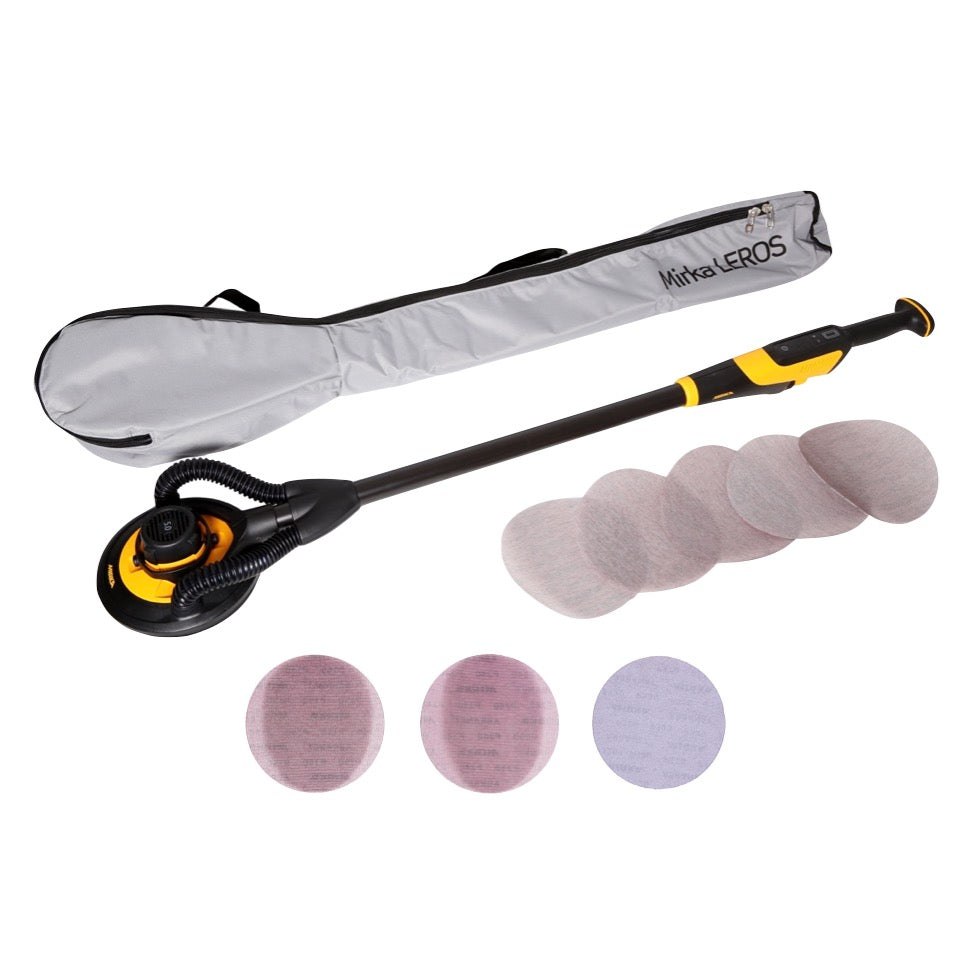 Mirka LEROS 950 CV Wand- und Deckenschleifer 350 W 5,0 mm Hub 225 mm + Tragetasche + 80x Schleifscheiben