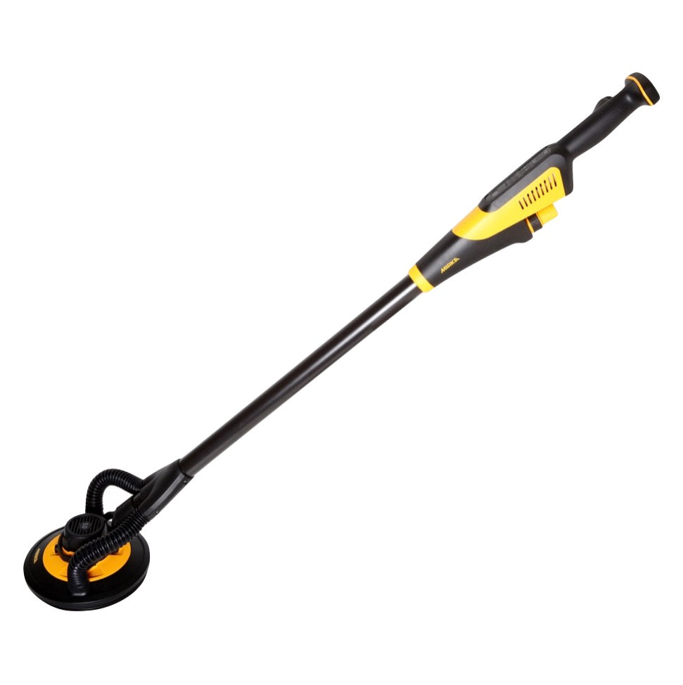Dieser einzigartige Wand- und Deckenschleifer von Mirka überzeugt mit nur 3,5 kg Gewicht und einem bürstenlosen Motor. Das geringe Gewicht ermöglicht dem Anwender ein Schleifen über längere Zeiträume, ohne den Körper zu belasten. Ein weiterer Vorteil ist die 180°-Flexibilität am Schleifkopf. Die Oberfläche kann von einem besseren Winkel erreicht werden, was dem Anwender eine ergonomische Position ermöglicht. Mirka LEROS hat eine exzentrische Bewegung. Dank dieser reagiert die Maschine genau auf die Bewegungen des Anwenders. Eine praktische Tragetasche sorgt dafür, dass der Schleifer stets gut verstaut und transportiert werden kann.