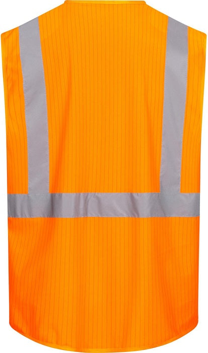 EN ISO 13688/EN ISO 20471/EN 1149 · 100% Polyester · 120 g/qm · mit Carbon-Faden · zwei umlaufende Reflexstreifen · mit Schulterreflexstreifen für besonders gute Sichtbarkeit · mit Reißverschluss · D-Ring · zwei Seitentaschen · Smartphone-, Stift- und ID-Tasche auf der Brust, praktische Schlaufe für z. B. Mobiltelefone oder Taschenlampen